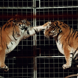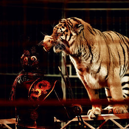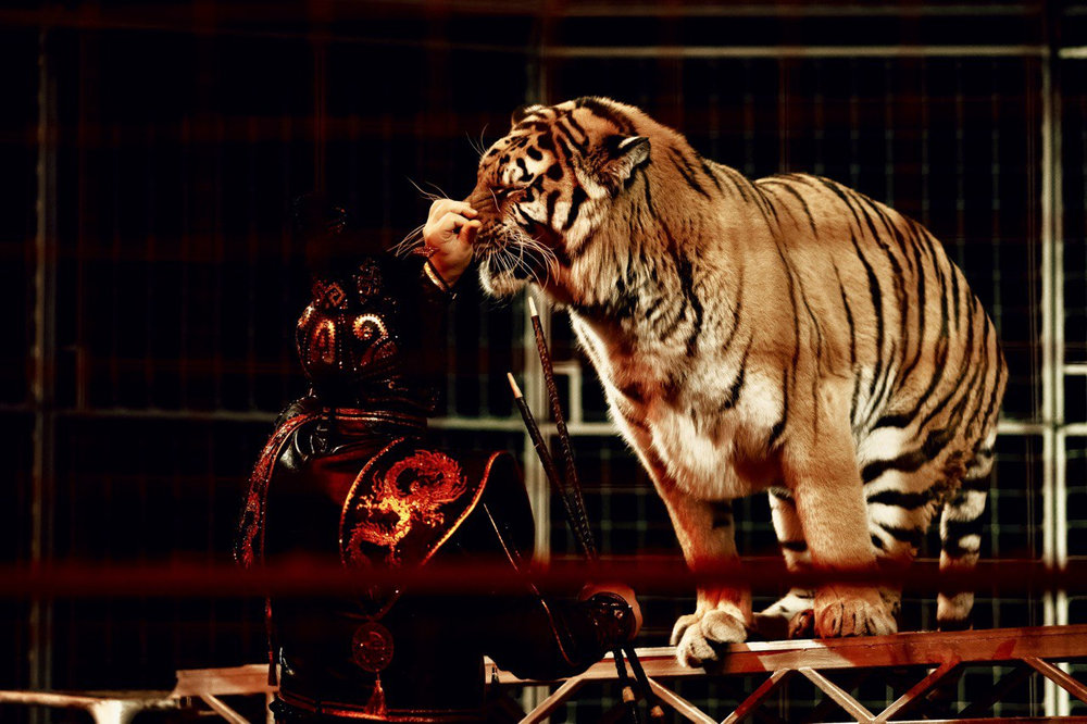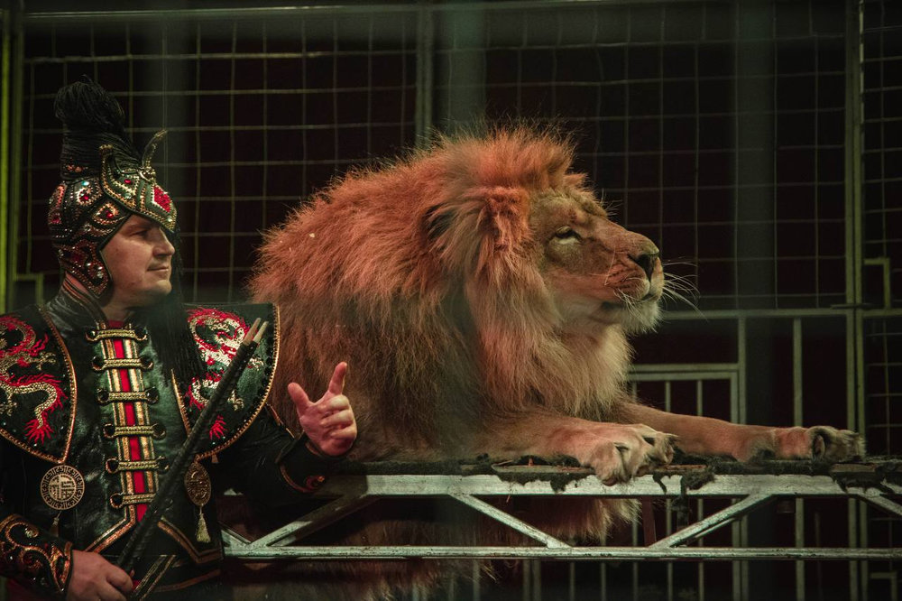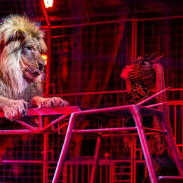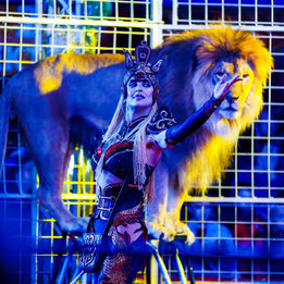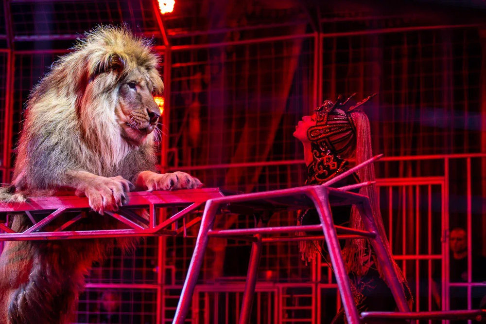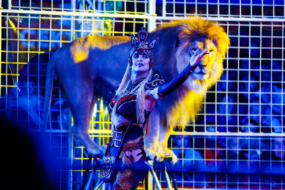 Грозная грация: Уникальный аттракцион бенгальских тигров и величественного африканского льва под руководством бесстрашных дрессировщиков Натальи и Юрия Ковалевых.